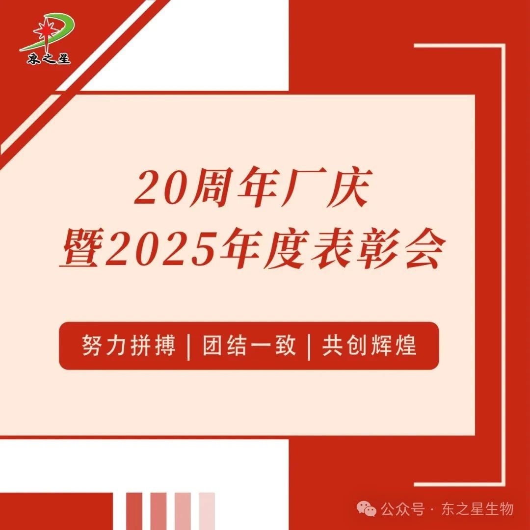 2025年8月8日,河北東之星生物科技股份有限公司20周年廠慶暨2025年度表彰會圓滿落幕。從回望二十年崢嶸路,到擘畫未來發(fā)展藍圖,從表彰先進榜樣,到共簽目標承諾,每一個環(huán)節(jié)都凝聚著東之星人的初心與擔當,讓我們一同回顧一下這場盛會的精彩瞬間。