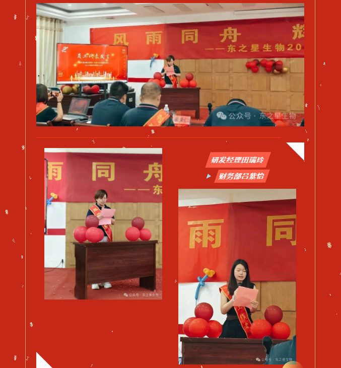 “在東之星的這些年,我見證了公司的成長,也實現(xiàn)了自我的突破?!毖邪l(fā)部經(jīng)理田瑞玲與財務部呂紫怡作為員工代表上臺發(fā)言,她們分享了在工作中的感悟與收獲,字里行間滿是對公司的熱愛與對團隊的感謝。真誠的話語道出了所有東之星人的心聲:唯有同心同德、攜手并進,才能讓公司在前行的道路上走得更穩(wěn)、更遠。